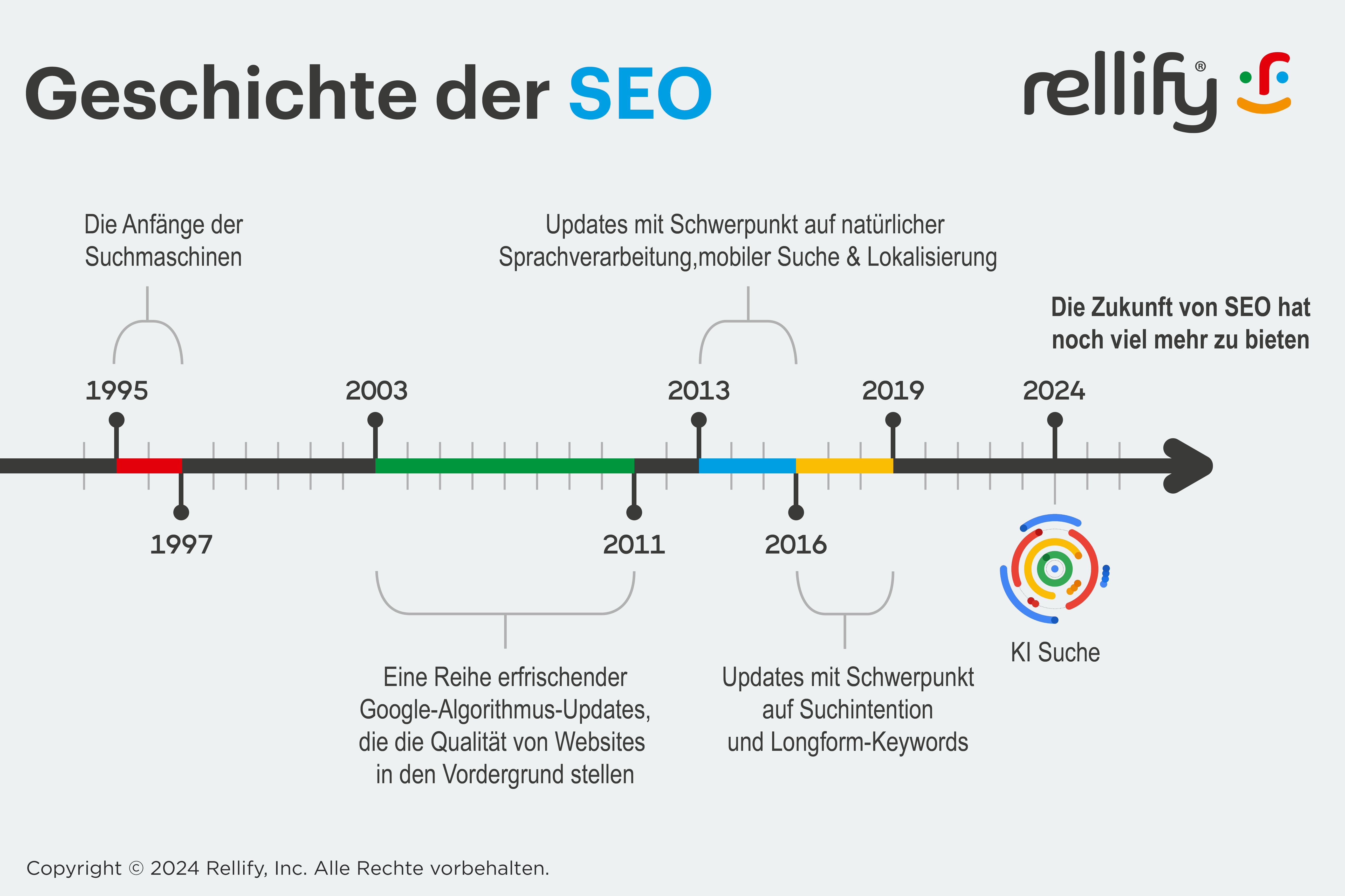 Erfahre alles über die Geschichte der Suchmaschinenoptimierung – von den Anfängen bei der Vermarktung der Rockband Jefferson Starship bis hin zu den neuesten Entwicklungen bei KI-generierten Antworten.